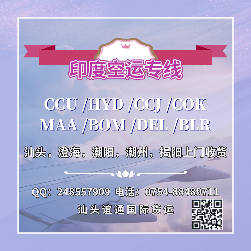 汕頭至印度CCU/HYD/CCJ/COK國際空運專線