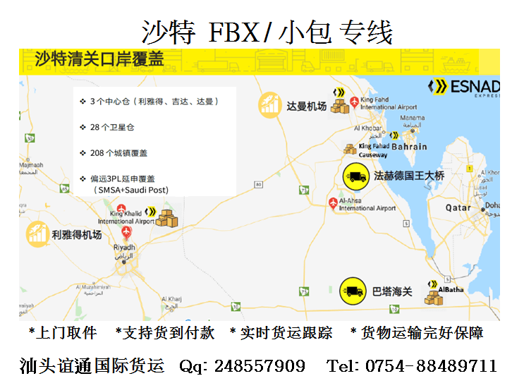 汕頭澄海潮州揭陽到沙特FBA/小包專線
